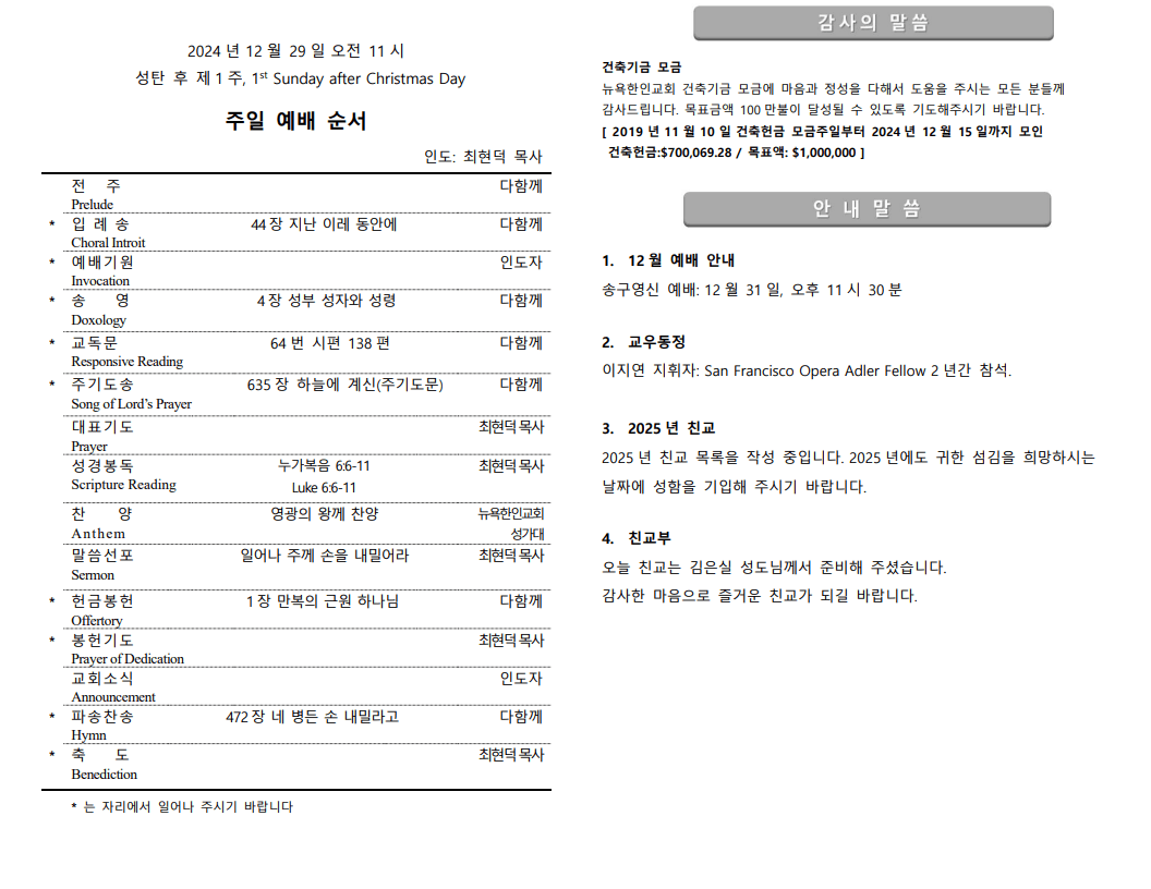Category: 주보By nykc.admin2024년 12월 29일Leave a commentAuthor: nykc.admin https://newyorkkoreanchurch.comPost navigationPreviousPrevious post:2024년 12월 22일 주보NextNext post:2025년 1월 5일 주보Related posts2026년 1월 18일 주보2026년 01월 18일2026년 1월 11일 주보2026년 01월 11일2026년 1월 4일 주보2026년 01월 04일2025년 12월 28일 주보2025년 12월 28일2025년 12월 21일 주보2025년 12월 21일12월 14일 주보2025년 12월 14일