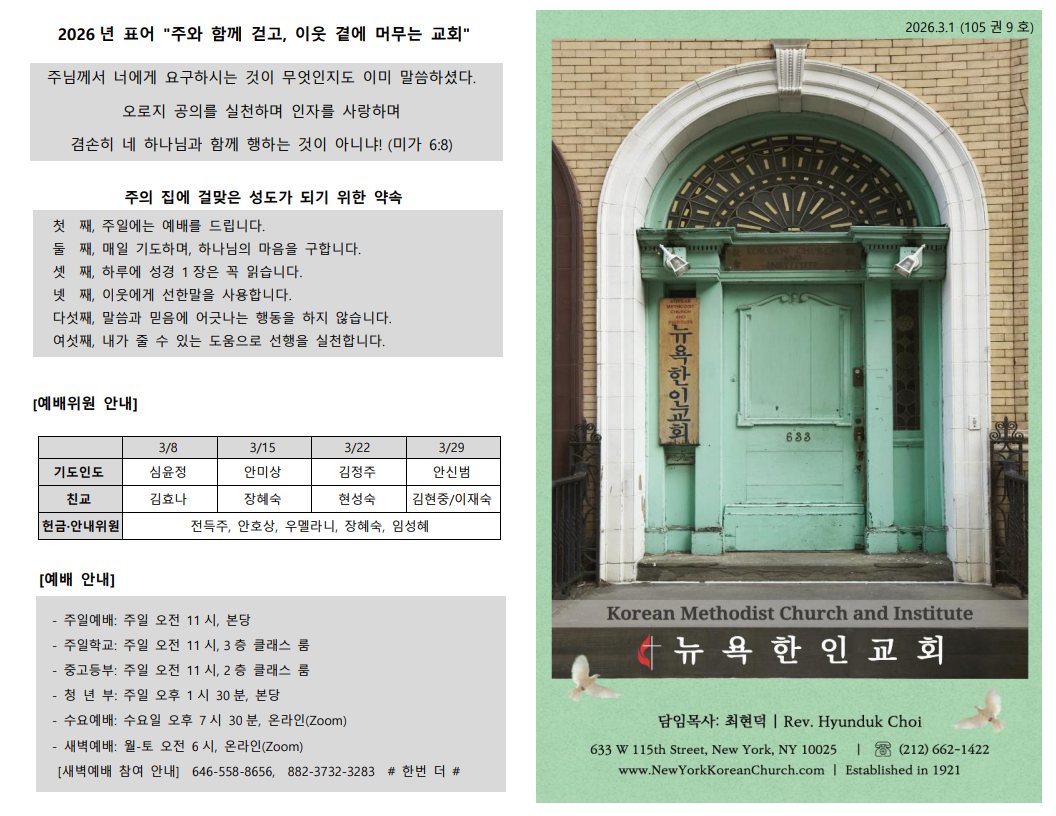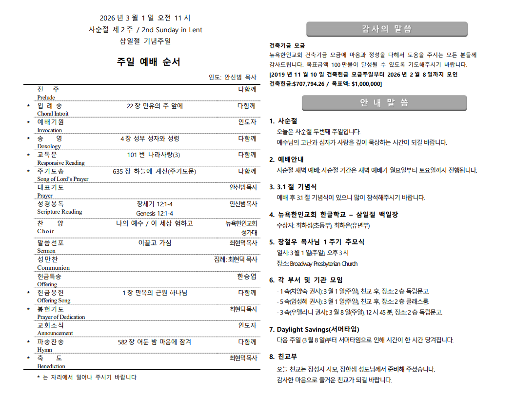 Category: 주보By nykc.admin2026년 03월 01일Leave a commentAuthor: nykc.admin https://newyorkkoreanchurch.comPost navigationPreviousPrevious post:2026년 2월 22일 주보NextNext post:2026년 3월 8일 주보Related posts2026년 4월 5일 주보2026년 04월 05일2026년 3월 29일 주보2026년 03월 29일2026년 3월 22일 주보2026년 03월 22일2026년 3월 15일 주보2026년 03월 15일2026년 3월 8일 주보2026년 03월 08일2026년 2월 22일 주보2026년 02월 22일