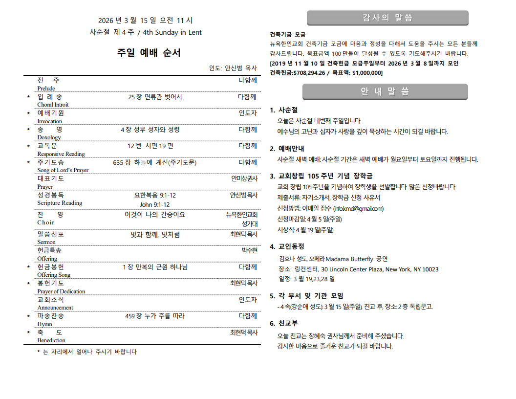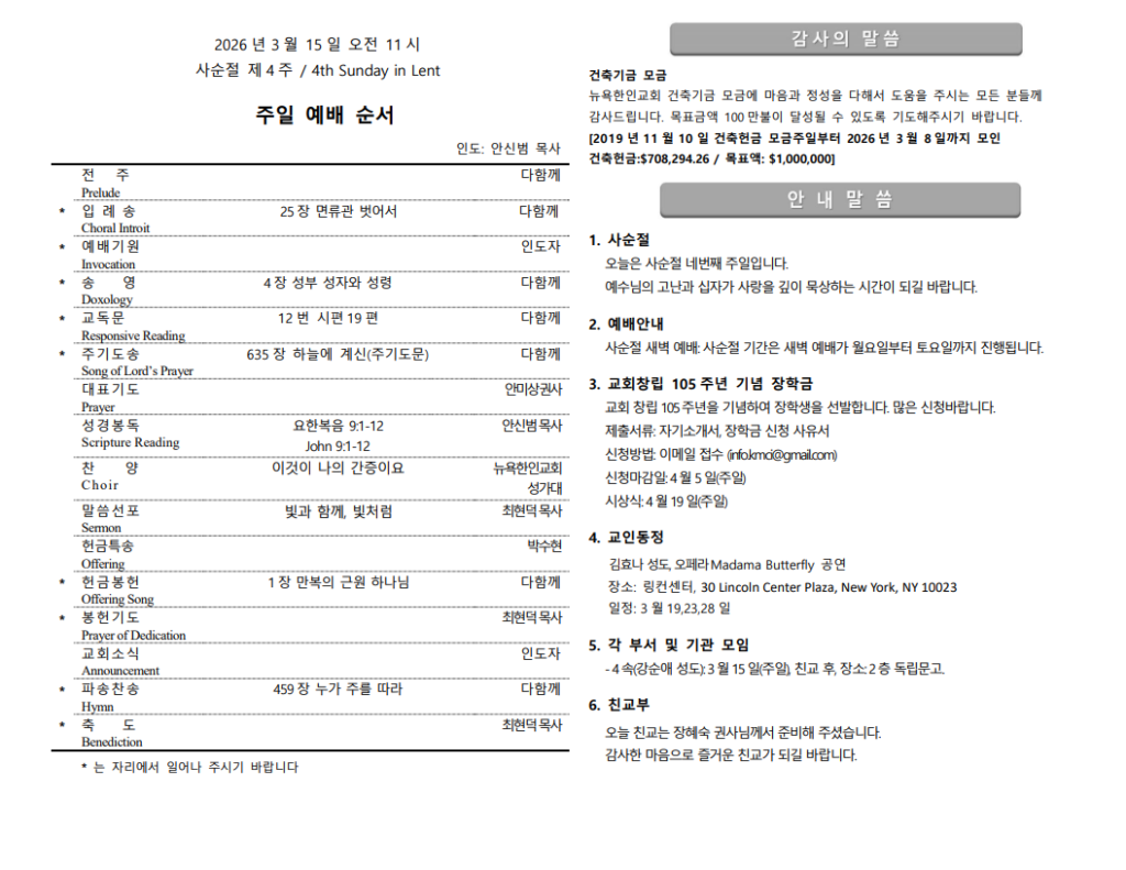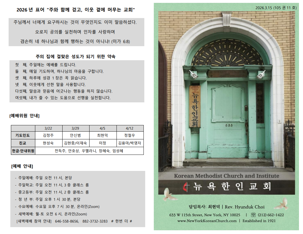 Category: 주보By nykc.admin2026년 03월 15일Leave a commentAuthor: nykc.admin https://newyorkkoreanchurch.comPost navigationPreviousPrevious post:2026년 3월 8일 주보NextNext post:2026년 3월 22일 주보Related posts2026년 4월 5일 주보2026년 04월 05일2026년 3월 29일 주보2026년 03월 29일2026년 3월 22일 주보2026년 03월 22일2026년 3월 8일 주보2026년 03월 08일2026년 3월 1일 주보2026년 03월 01일2026년 2월 22일 주보2026년 02월 22일