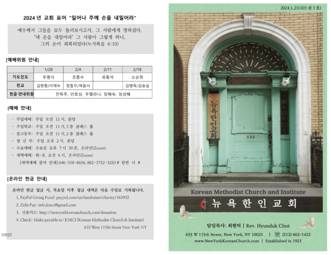 1. 2023 년 총회(Charge Conference) 12 월 17 일(주일), 오후 12:45, 장소: 지하 친교실 2. 성탄 전일 예배 12 월 24 일(주일), 오후 2 시, 장소: 본당 3. 송구영신 기도회 12 월 31 일(주일), 오후 8 시, 장소: 본당 4. 속회, 선교회 안내 신우회(총회): 12 월 31 일, 친교 후, 장소: 3…